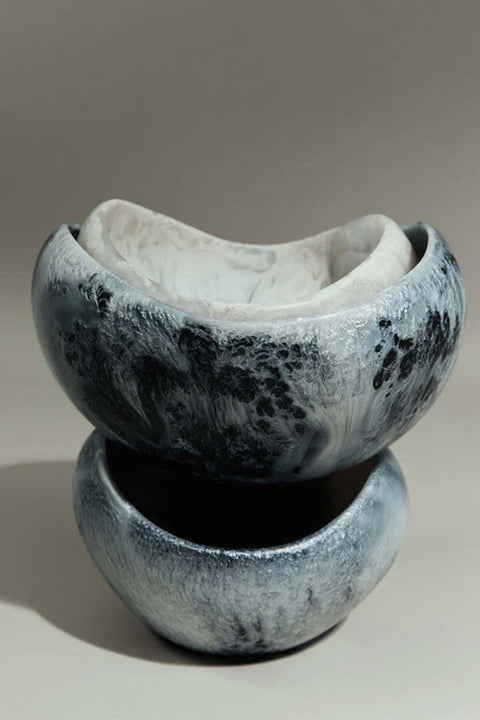 With a curved, sculptural surface, Dinosaur Designs Large Beetle bowl brings a unique and subtle elegance to the table. The depth of the bowl accentuates its curves, becoming an excellent vessel for large, leafy salads. Its smaller counterpart nests perfectly within and sits beautifully as a stand alone sculptural piece.