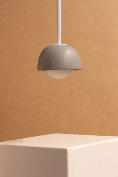 This Imperfect Terra 0 Pendant with Solid Rod in Fog and White Satin, is functionally sound and is made up of a mix of sample seconds, discontinued finished and new components.