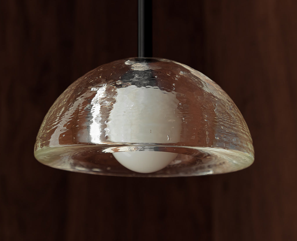 Aurelia Pendant, Cast Glass and Brushed Black. Photographed by Aaron Chapman.