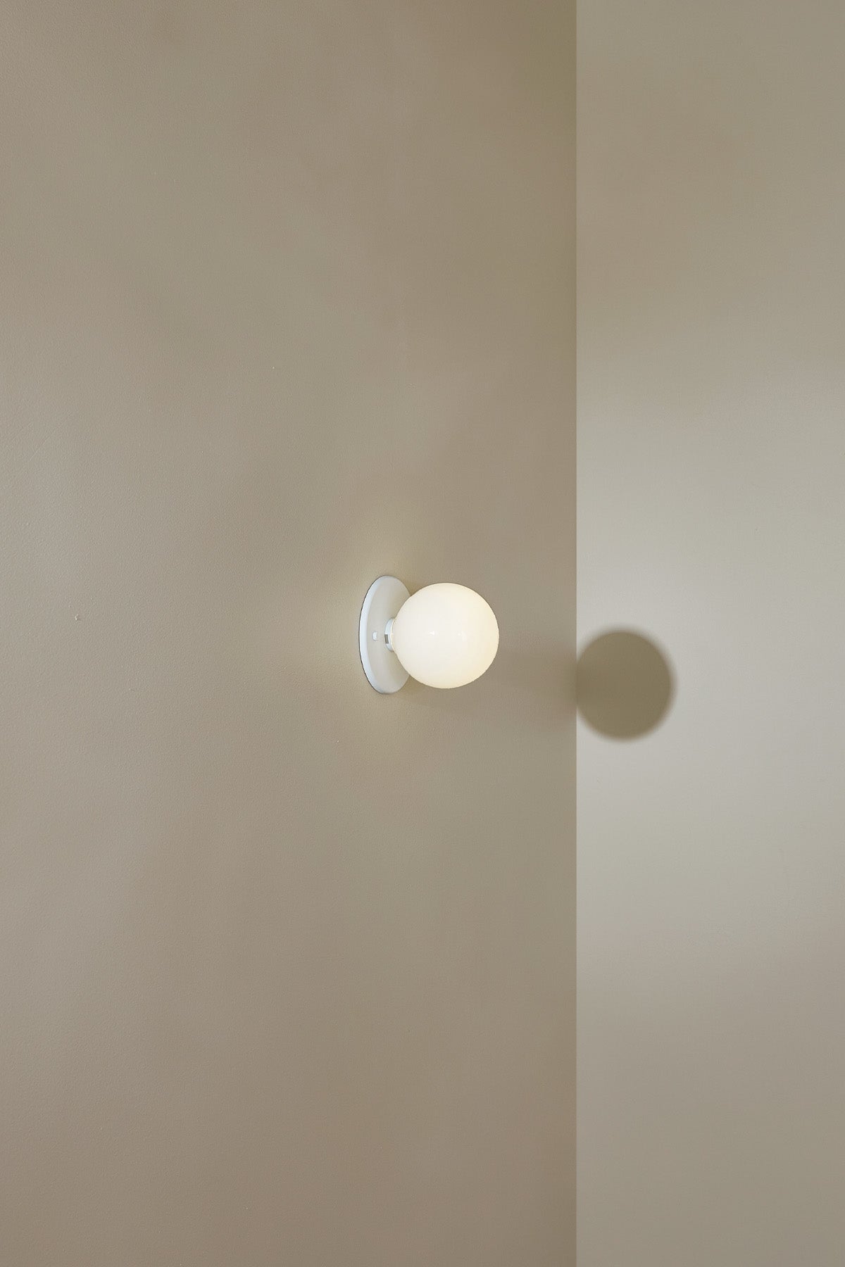 Orb Surface Sconce, Small in Brass and Opal. Image by Lawrence Furzey.